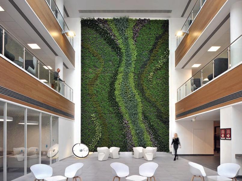 The restaurant/atrium space has a three-storey living green wall that, as well as forming part of the 'earth' zone, also helps adsorb sound, which is considerable when the restaurant is full with 100 diners. The wall also earns the building credits towards its BREEAM Excellent status.