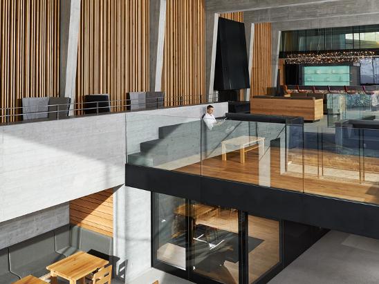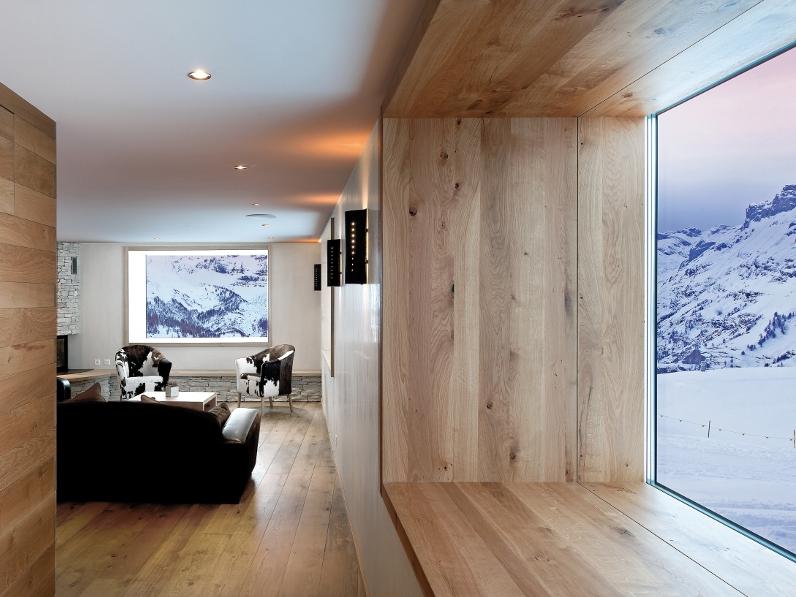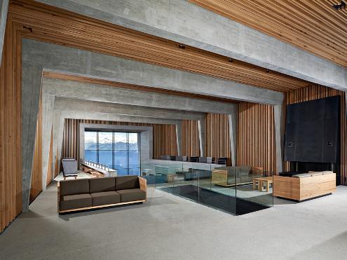 The landscape, they say, 'becomes an integral part of the decor of the various spaces due to the large picture windows, and subtle dimming of the lights shows the grandeur of the circus of the Valais Alps to the south.'