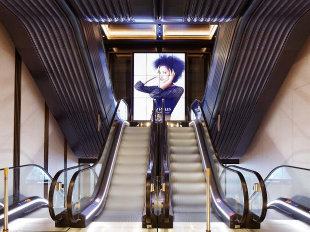 The new escalators feature fluted bronze cladding, in a reference to the store's original facade.