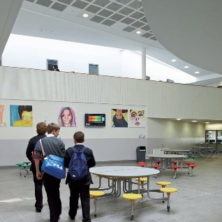The idea of this project, says Skilton, was to create a 'flagship academy', and as such the budget allowed the designers to specify furniture and materials that go beyond those used in standard school buildings. 'The sponsor and the local authority, which together were paying for this building, were very keen to get something that would be a flagship,' says Skilton. 'For the Woodard Trust this was its first new-build academy. Previously it had been working out of existing buildings, so it was important for the trust to have something it could shout about.'