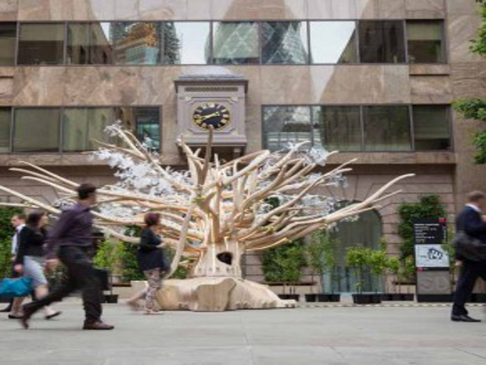 15 July 2013It’s a tree but not as we know it. It’s not alive, but it offers fruit. The Mobile Orchard is an installation by atmos that has been touring in July’s City of London Festival, here snapped from Devonshire Square and beside 30 St Mary Axe. Next month, the Mobile Orchard goes nationwide with Trees for Cities, a charity dedicated to planting urban trees – check out their itinerary when it emerges.