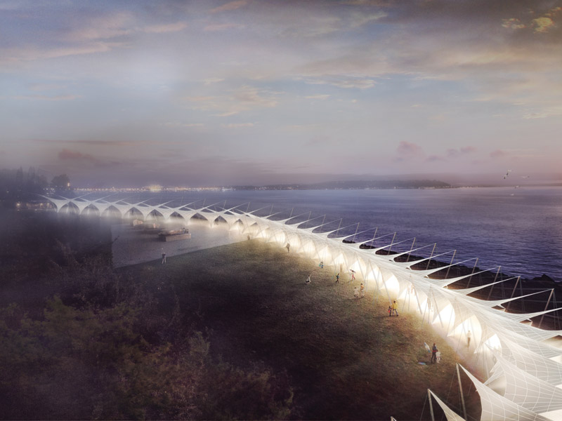 8 February 2019Designers from Seattle-based design firm Olson Kundig share their designs for a flexible shelter – to provide protection on rainy days and light on gloomy days