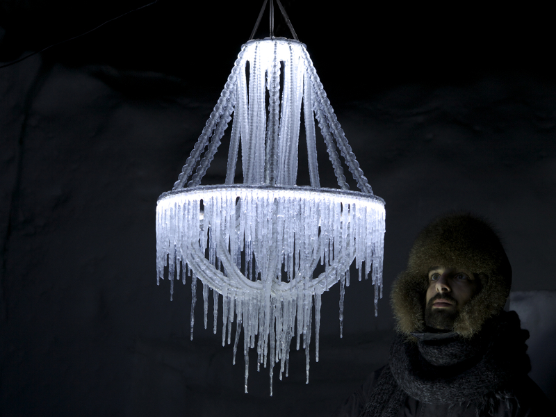 Outdoor Chandelier grows its own beautiful covering of ice