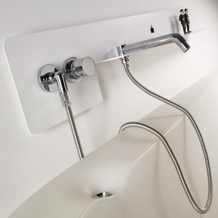 22 March 2012Italian bathroom brand Wet has launched the Fold bathroom shelf and faucet combination.